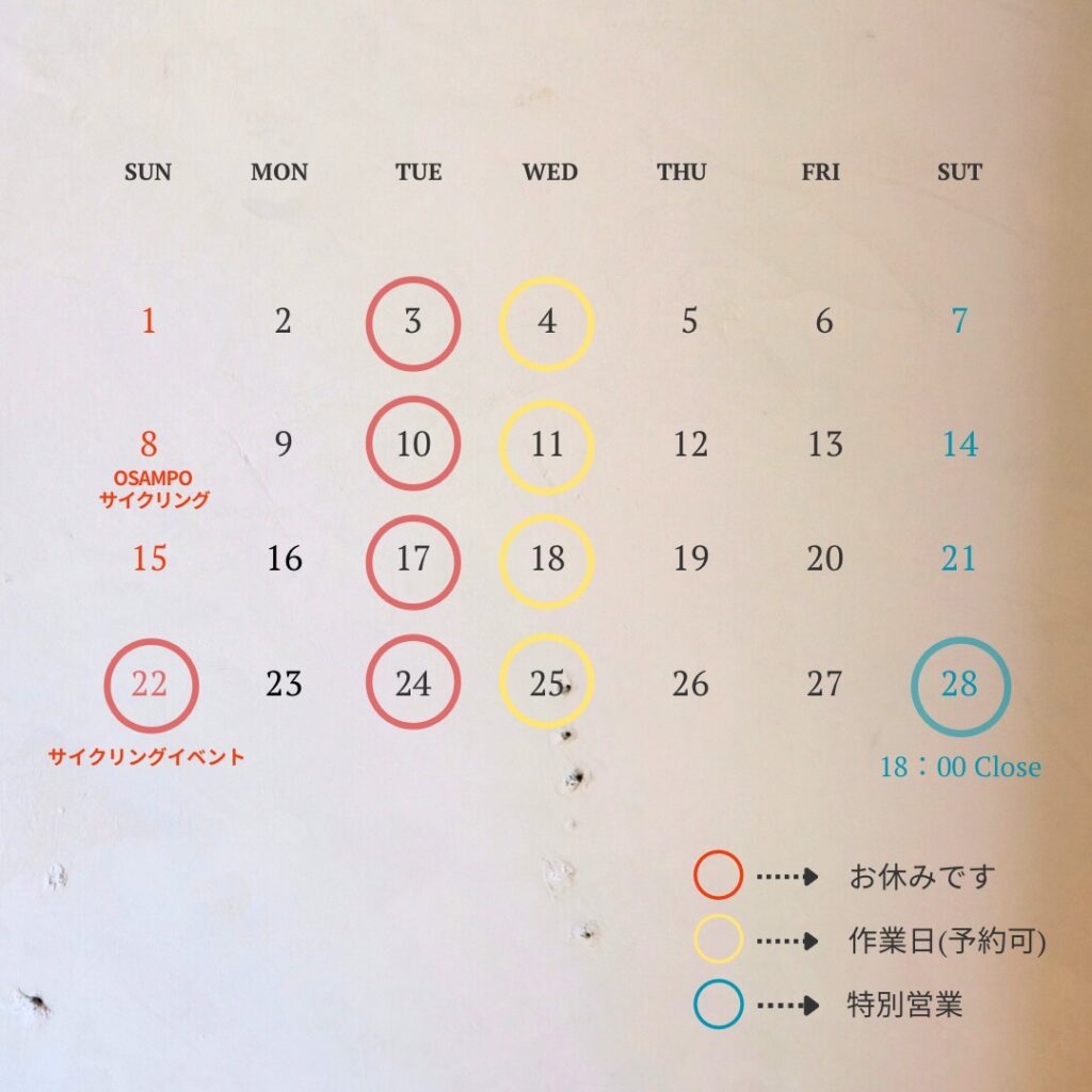 12月は、私用やサイクリングでちょこちょこお休みを頂きます
